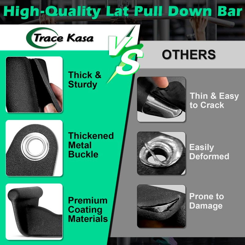 • High Quality Grips: At home gym must haves workout accessories is this lat pull down attachment set, constructed of heavy duty steel and premium coating rubber, makes the close grip lat pull down handle thick, sturdy and feeling good to touch. The lat pulldown bar also has thickened metal buckle designed, will not easy to deform. Our products lat bar will give you a excellent and safe workout experience!