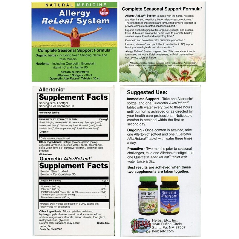 - Contains one 30-count bottle of Allertonic softgels and one 30-count bottle of Quercetin AllerReleaf tablets
