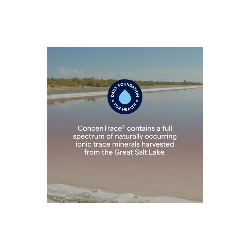 ConcenTrace is a natural mineral concentrate extracted from the waters of Utah's Inland Sea, the Great Salt Lake. It is made up of the most powerful, natural, health giving trace minerals in the world. Soluble, Liquid, Ionic. It is so concentrated that 40 drops (1/2 teaspoon) equals the mineral content of 1/2 cup sea water with 99 percent sodium removed. You may expect a wide spectrum of nutritional benefits.