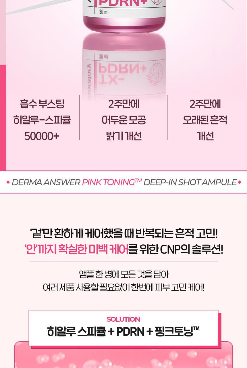 [흔적미백PDRN] 차앤박 더마앤서 핑크토닝 딥인샷 앰플 30ml