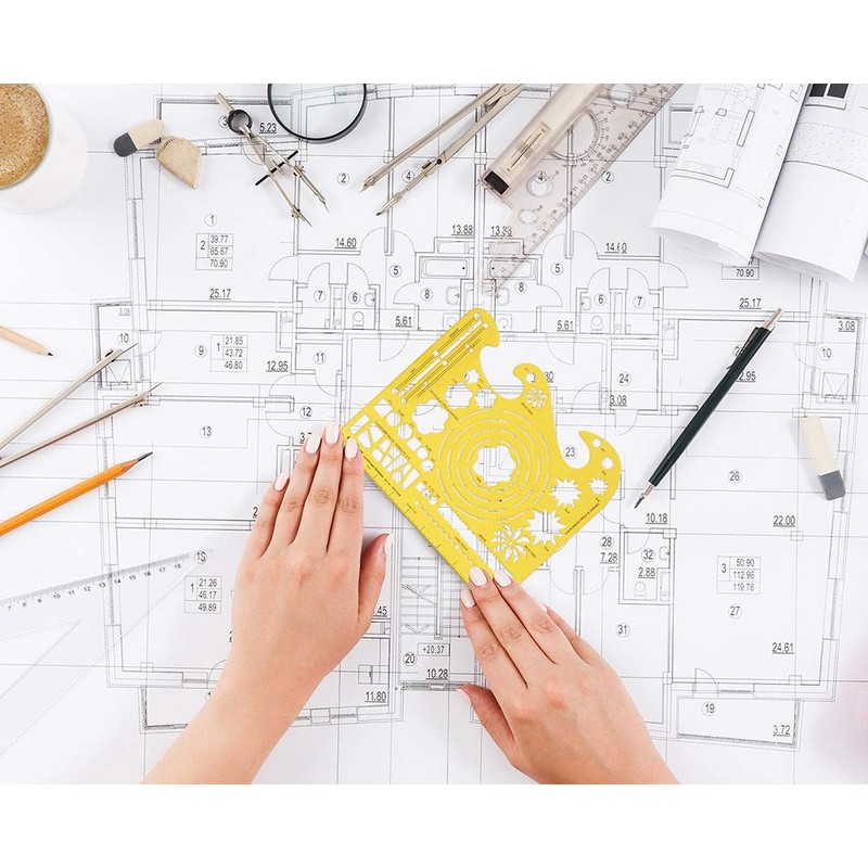 • ✅ GREAT HELP FOR STUDENTS & PROFESSIONALS: The clear yellow architect,interior & furniture ruler templates are great for art design, building formwork and drawing templates in school, office, home. This versatile stencil allows the user to place it on any surface and draw or cut precise shape according to their requirements.