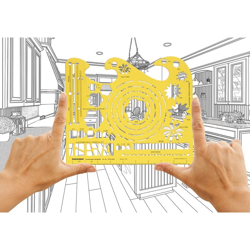 Traceease Drafting Tools Landscpae Template for Flagstones/Wire Fence/Tree/He...