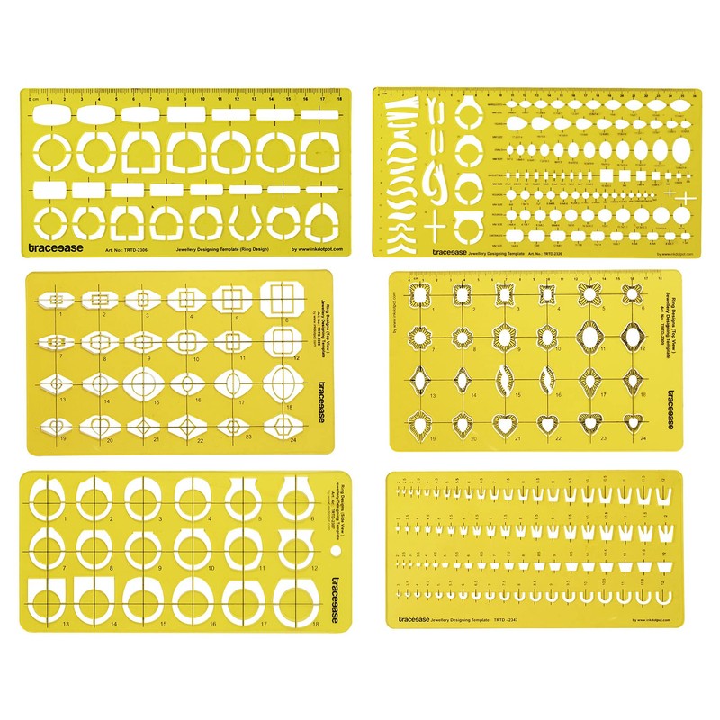 Traceease Jewelry Designing Template Drafting Tools Gemstone MultiSize Jewellery Stencil- Pack of 6 Pcs