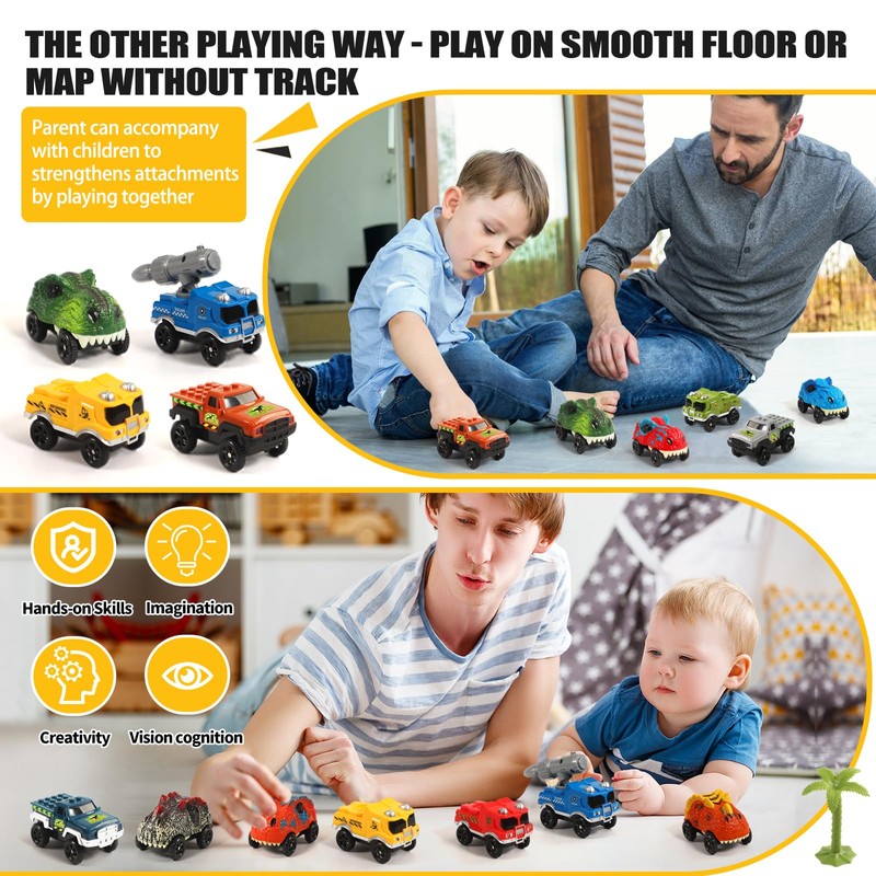 - 【Fit most Tracks】 - Save Unicorn track cars only compatible with most race track sets, including dino dinosaur toys track, neon rainbow tracks and so on(the inner width of the track should be at least 2.17 inches = 5.5cm). It can also be played on any smooth surface independently to Stimulate children's imagination.