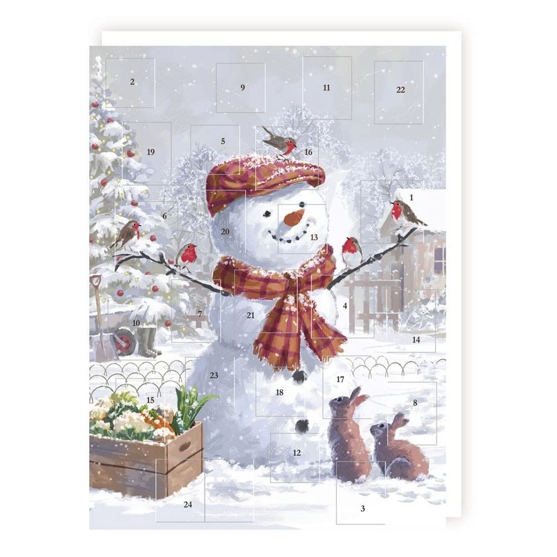 Tracks Traditional Smiling Snowman Advent Calendar - 24 Doors Christmas Countdown, White