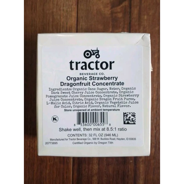 Tractor Beverage Co. Organic Beverage 8.5:1 Tractor Juice STRAWBERRY DRAGON FRUIT Concentrate 32 oz.