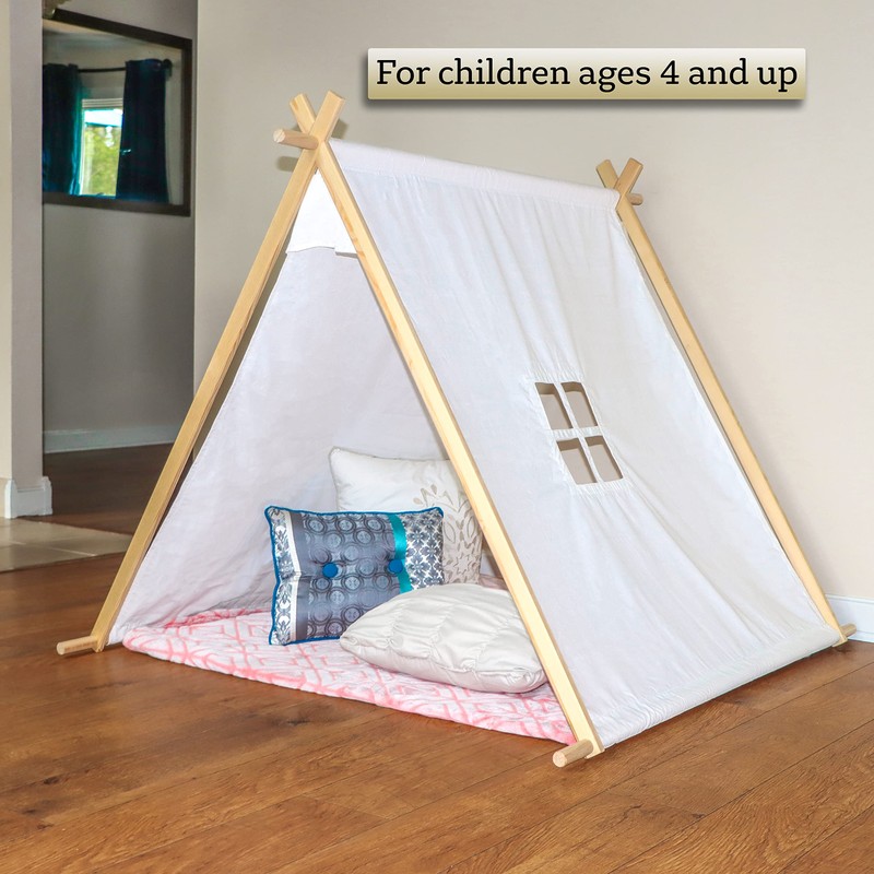 Trademark Innovations 3.3' Canvas A-Frame Teepee With Carry Case - Customizable Canvas Fabric (White)
