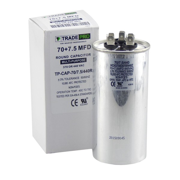 TradePro 70/7.5 MFD 370/440 Volt Round Dual Run Capacitor