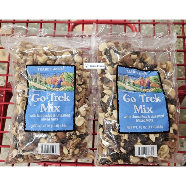 Trader Joe Go Trek Mix with Unroasted & Unsalted Mixed Nuts 16oz 454g (Two Bags)