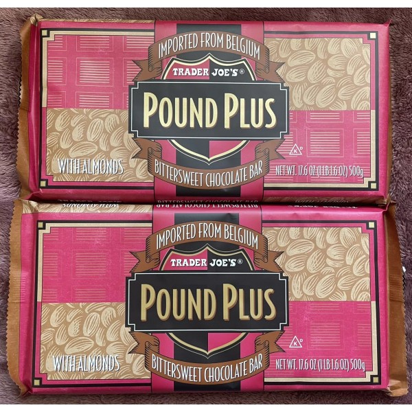 Indulge in the rich and decadent taste of Trader Joe's Pound Plus BitterSweet Chocolate with Almonds. This Belgian chocolate bar is packed with a delicious almond flavor that will leave your taste buds wanting more.
