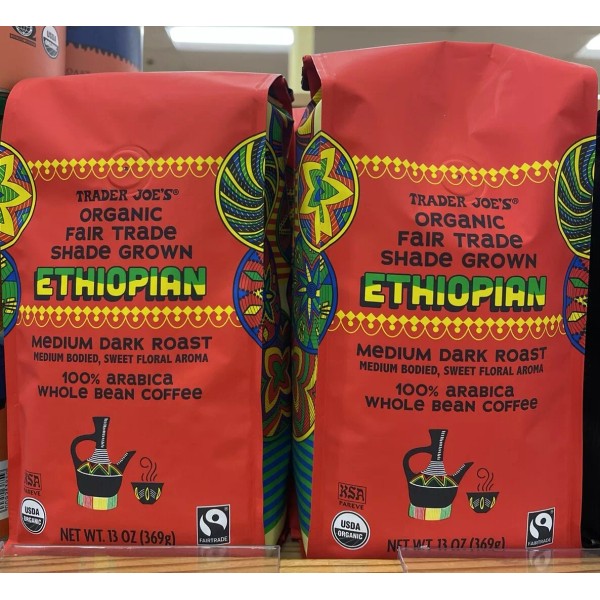 2 Pack Trader Joe's Organic Ethiopian Medium Dark Roast Whole Beean Coffee
