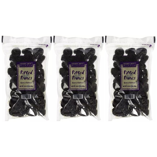 Trader Joe's 3 Packs Trader Joe's Dried Fruit Pitted Prunes 16 oz Each Pack, Total 3 lbs