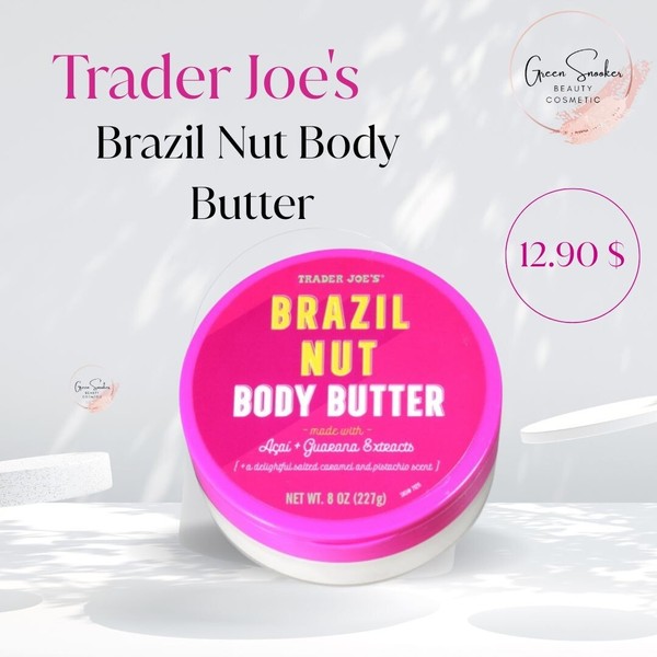 Trader Joe’s Brazil Nut Body Butter! Yes, folks, your ideal summer skin smoother is here! Thick, rich, and smelling of summer, this mega moisturizer is crafted with an impressive list of ingredients, including coconut oil, shea butter, açai extract, guarana extract, and, of course, bertholletia excelsa seed oil a.k.a. Brazil nut seed oil. Flip open the hot pink lid to release the intoxicating scent of salted caramel, pistachio, and beachy notes of coconut and vanilla.
