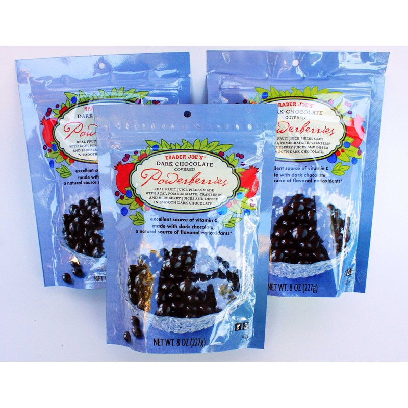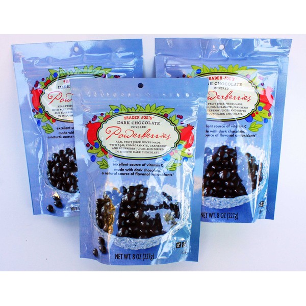 Trader Joe's Dark Chocolate Covered Powerberries with Acai, Pomegranate, Cranberry and Blueberry (Pack of 3)