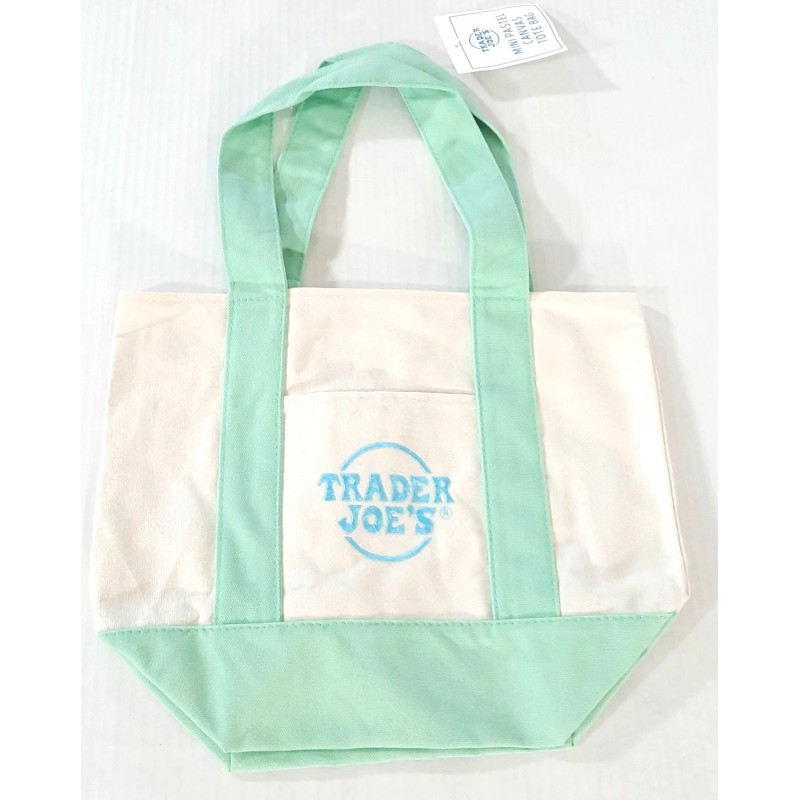 Trader Joe's Mini Pastel Canvas Tote Bag in Green NWT