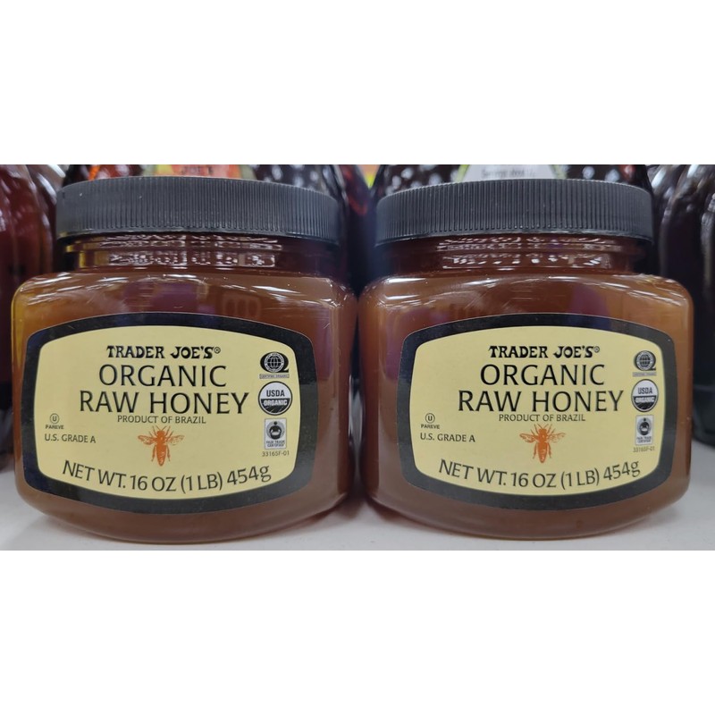 Trader Joe Organic Raw Grade A Honey 16oz 454g (Two Jars)