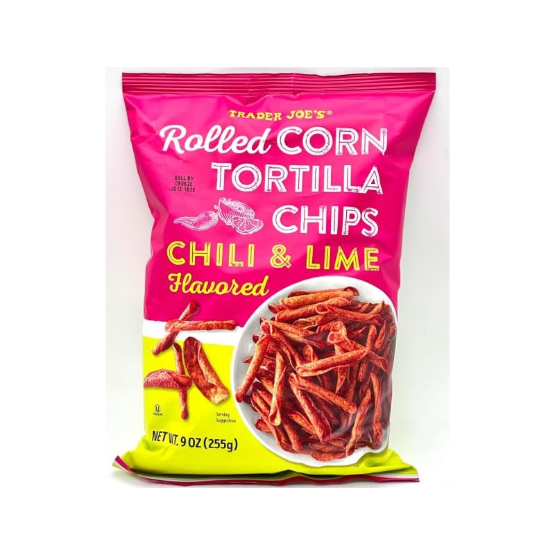 - Flavorful Snack: Chili & lime flavored rolled corn tortilla chips from Trader Joe's, offering a zesty and tangy taste.