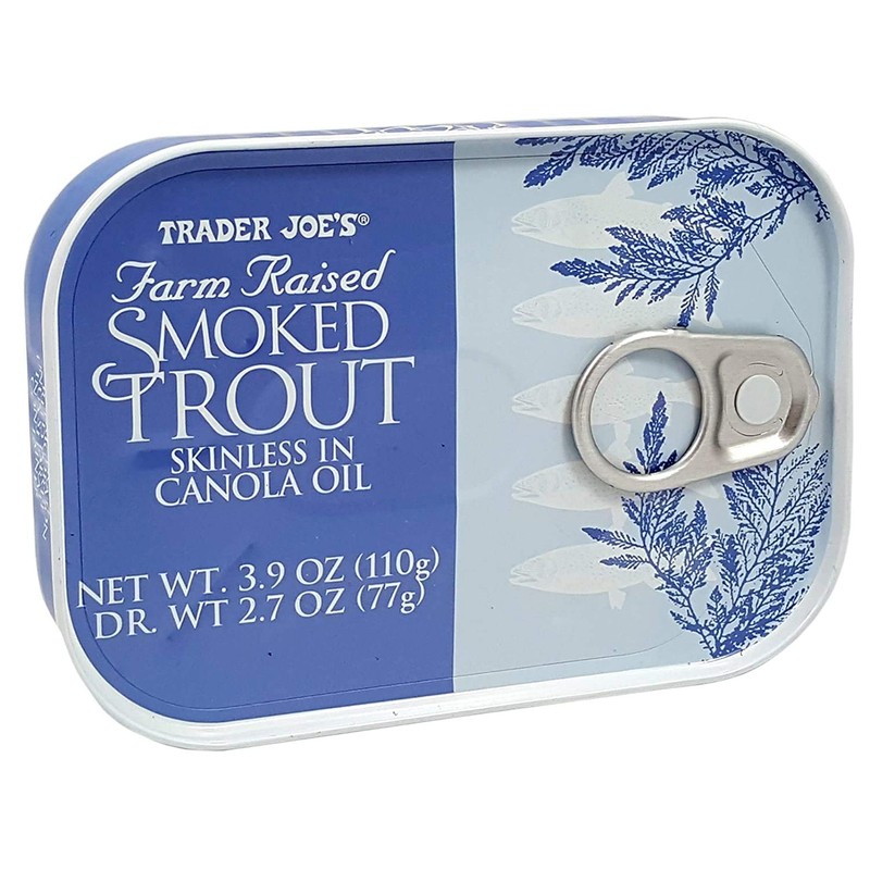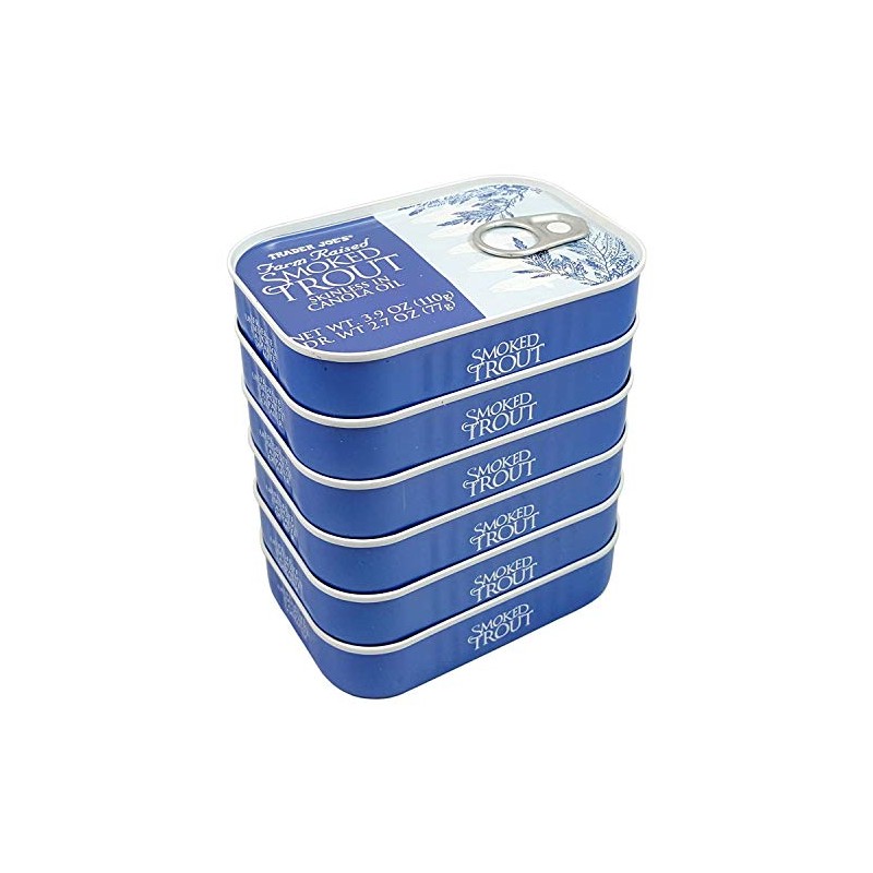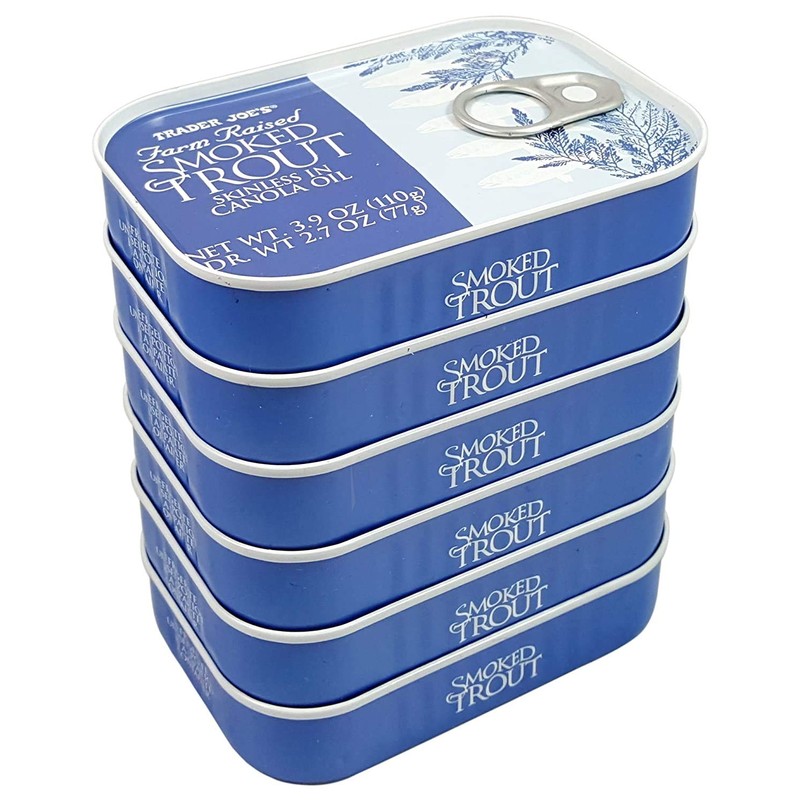 Trader Joe's Smoked Trout Fillets in Oil Skinless 3.9 oz Tin, (6 Pack)