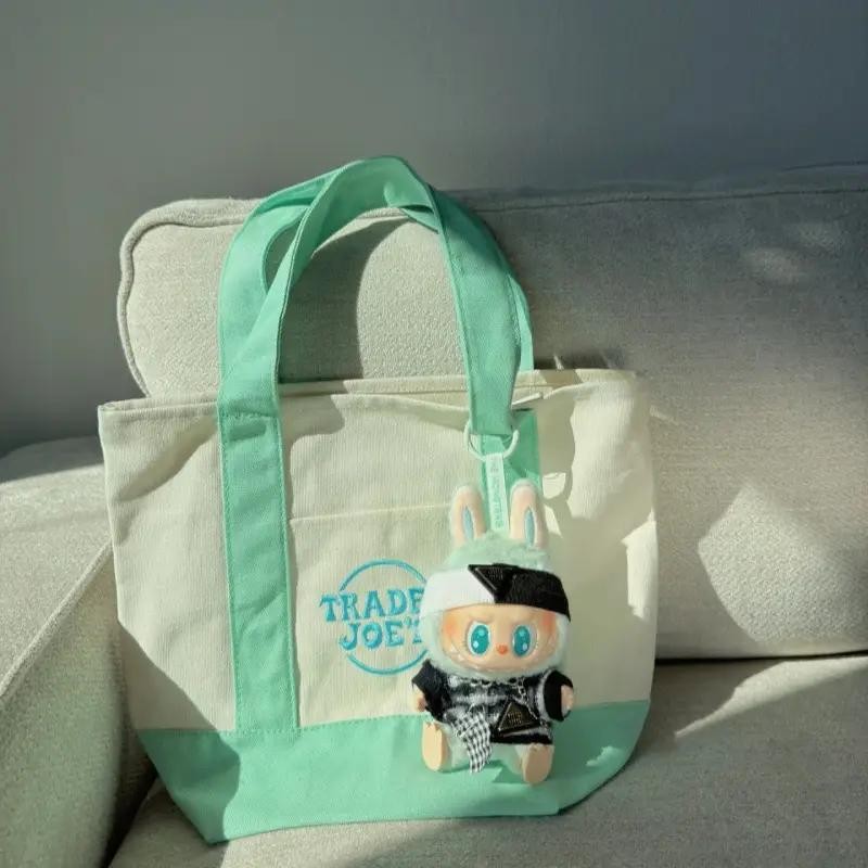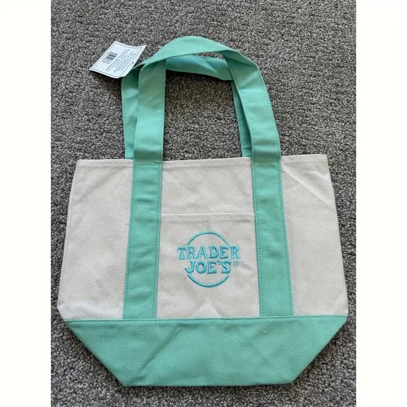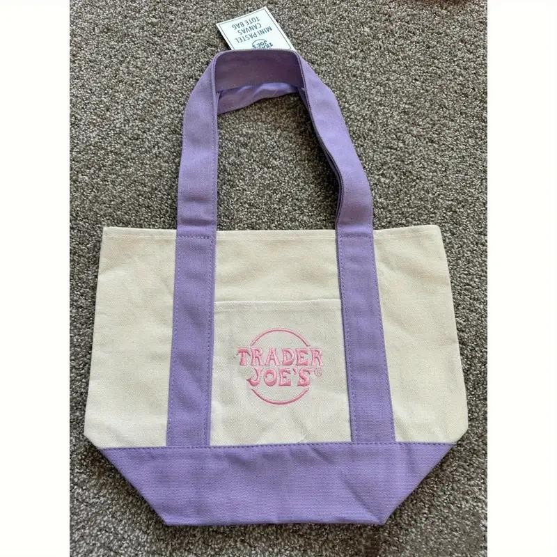 Trader Joe'sMini Tote Bag - Back to School Supplies,Pastel Mint Green & Pink ReusableGrocery Bag with Logo, Shopping Tote for Women,Spacious & Durable, Bag For Food Container:_2PC Purple+blu