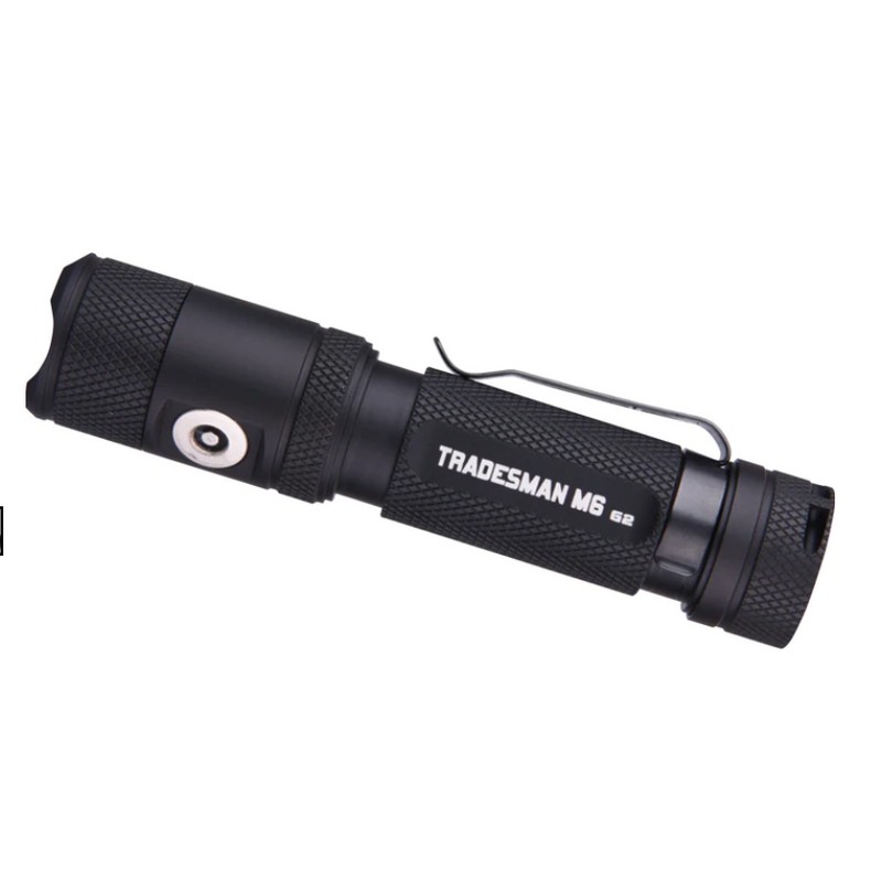 The Tradesman M6G2 reverse polarity protection helps protect the flashlight from improper battery installation hazards, and it preserves the LED and its electronic components with a superior heat sink designed for quick heat dispersion to keep the light cool even during extended use. Made with aircraft grade aluminum with a type III anodized finish, the Tradesman's tempered glass is engineered to resist breaking and scratching, and its double-coated glass lens ensures maximum OTF (Out The Front) brightness and beam distance so you can always bring light and clarity in the dark.