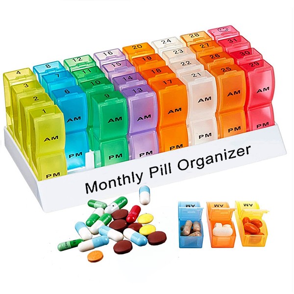 - ✅毎日お薬を飲む必要の有る方必携のお薬ケース、ピルケース、サプリメントケース、くすりケース、ピルボックス、習慣薬箱です。1ヵ月31日分のお薬を一日ごとに区分けして収納し、月毎に一括管理でき、飲み忘れの防止になります。