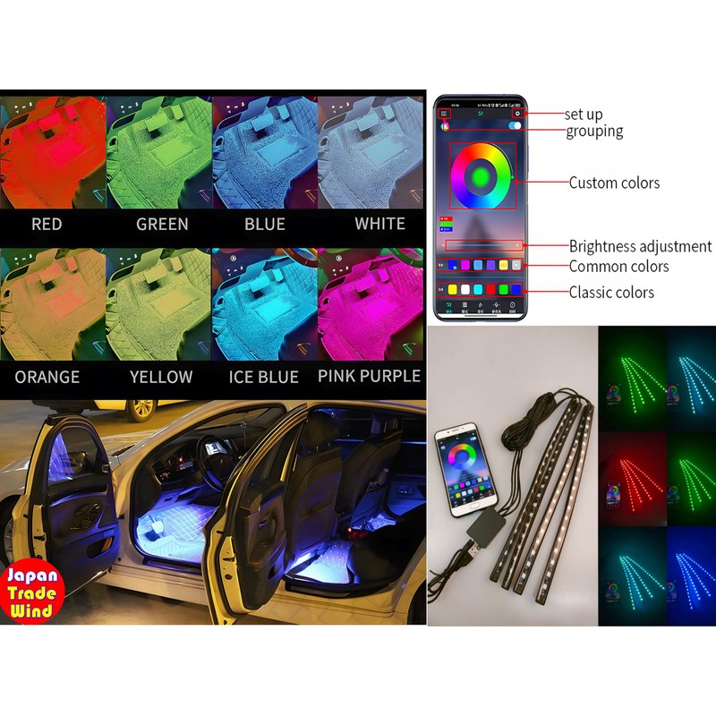 TradeWind LED Tape Light, USB Powered, RGB Car Illumination, Smartphone App, Sound Responsive, Foot Lamp (48 LEDs)
