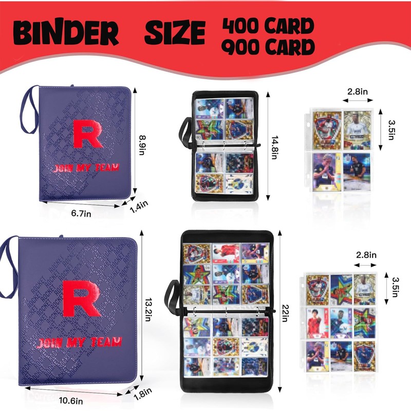 Trading Card Binder 9-Pocket with Handle, Red and Black, Join My Team Design 900 Pockets (Black, 900)
