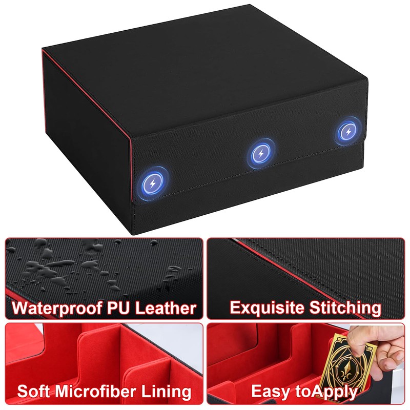 - 【PU LEATHER & EXQUISITE STITCHING】:This 3-row trading card box features a rugged PU leather exterior that is shockproof and not prone to wear, and a soft lining to prevent cards from getting scratched. Card ase durable materials and detailed stitching give you a rugged yet luxurious look,The card box is made of high-quality PU leather, which is waterproof, non-slip and dirt-resistant. The outer shell is sturdy and durable,The super strong magnetic closure design prevents the cards from falling out; just to bring you the best user experience!