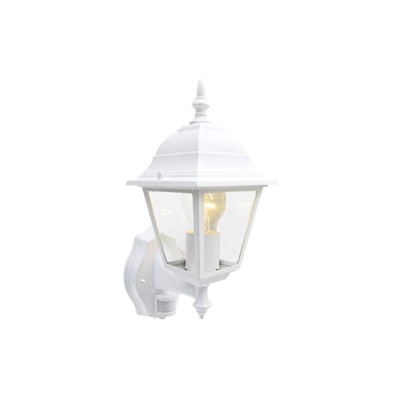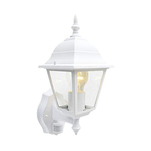 Traditional 4 Sided Garden/Porch Outdoor Coach Wall Lantern IP44 (White 4 Sided + Motion Sensor (no Bulb))