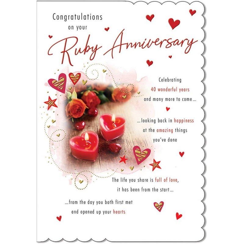 Traditional Annivesary Card Ruby - 9 x 6 inches - Piccadilly Greetings