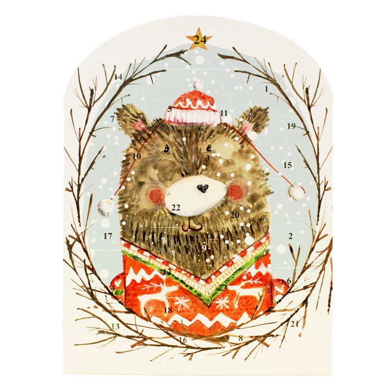 Traditional Christmas Advent Calendar with 24 Windows - Festive Bear
