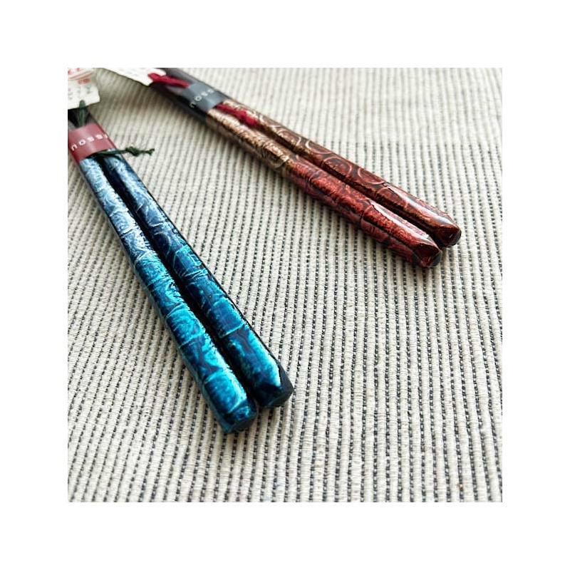- (1 pair) Carefully layered with the craftsmanship of a single layer, 2 layer, and 3 layers, and a “1 pair” with a layer of lacquer that has been carefully layered with lacquer over multiple layers. 400 years of history and still evolving. The moment you hold a pair of pair, your dining table will be a high quality space. Real texture and heavy feel. Cool, gradually fits in your hand. A pair of chopsticks is a masterpiece woven by Japanese chopsticks craftsmen. The beauty is the stage of a dining table that will bring you a beautiful Japanese heart. Chopsticks are meant to carry everyday meals to mouth. A pair of chopsticks with a goal of quality first, without hassle, will add a touch of color to your daily table. Available in 2 colors, blue 9.1 inches (23 cm) and red 8.3 inches (21