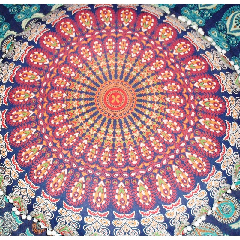 Traditional Jaipur Round Floor Cushion, Mandala Throw Pillowcases 32", Decorative Pouf Ottoman, Indian Outdoor Cushion Cover, Large Bohemian Pillow Shams