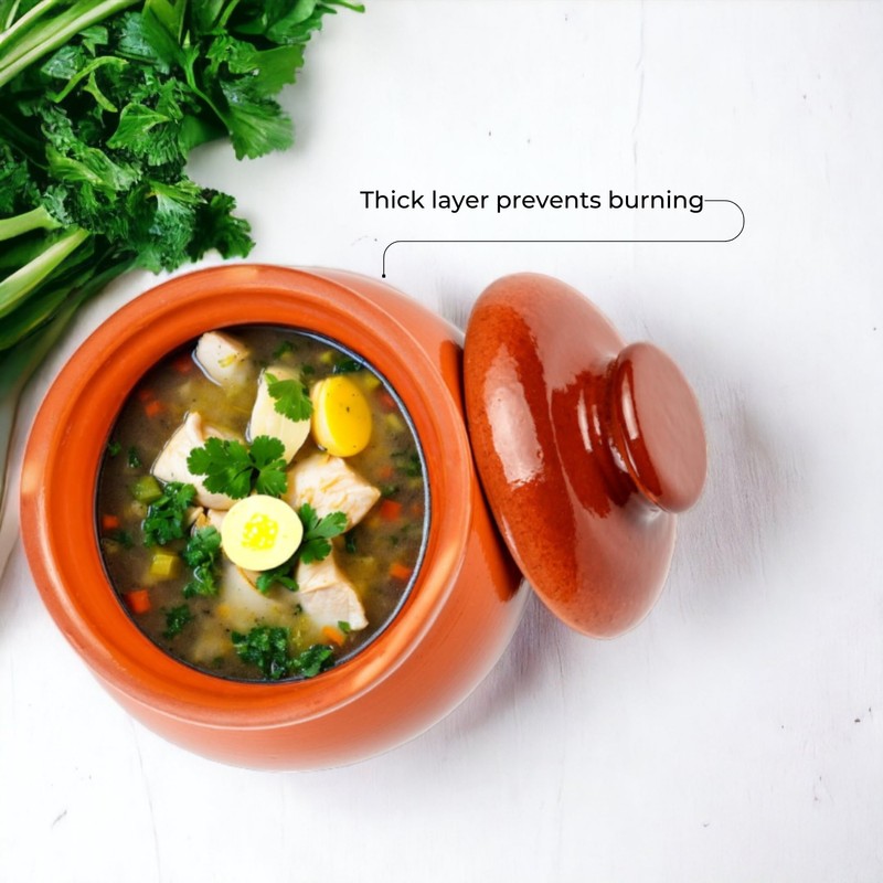 Traditional Natural Clay Stoneware Baking Pot with Lid (0.5-Qt) Stoneware Ramekin with Lid 17 fl oz 500 ml Clay Pot for Cooking, Dutch Oven Pot With Lid, Cooking Pot, Earthenware Pot