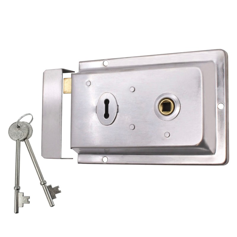 Traditional Rim Sashlock Satin Chrome Surface Mounted Lock 156 x 106mm
