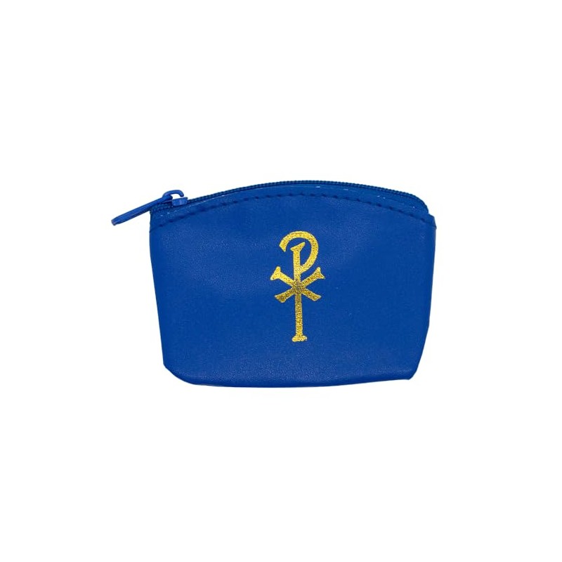 Traditional Rosary Pouch with Embossed Chi Rho (Navy Blue)