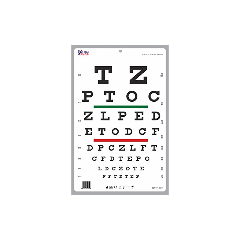 Traditional Snellen Eye Chart with Red/Green Bar Visual Acuity Test 6 M/20 Feet