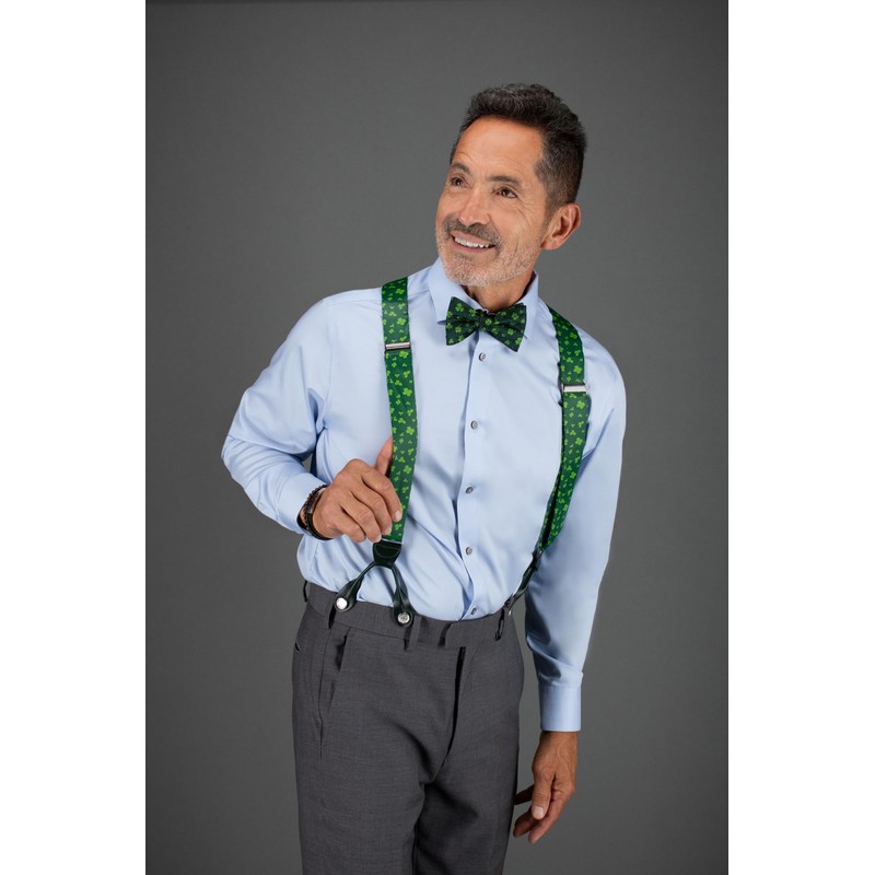 Trafalgar Men's Green Shamrock Silk Button End Brace (Suspenders), Green