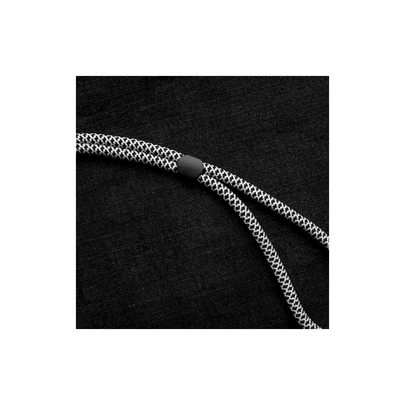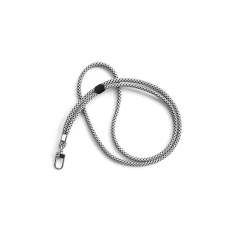 trage.band® Long Adjustable Neck Strap with Carabiner Hook, Black/White