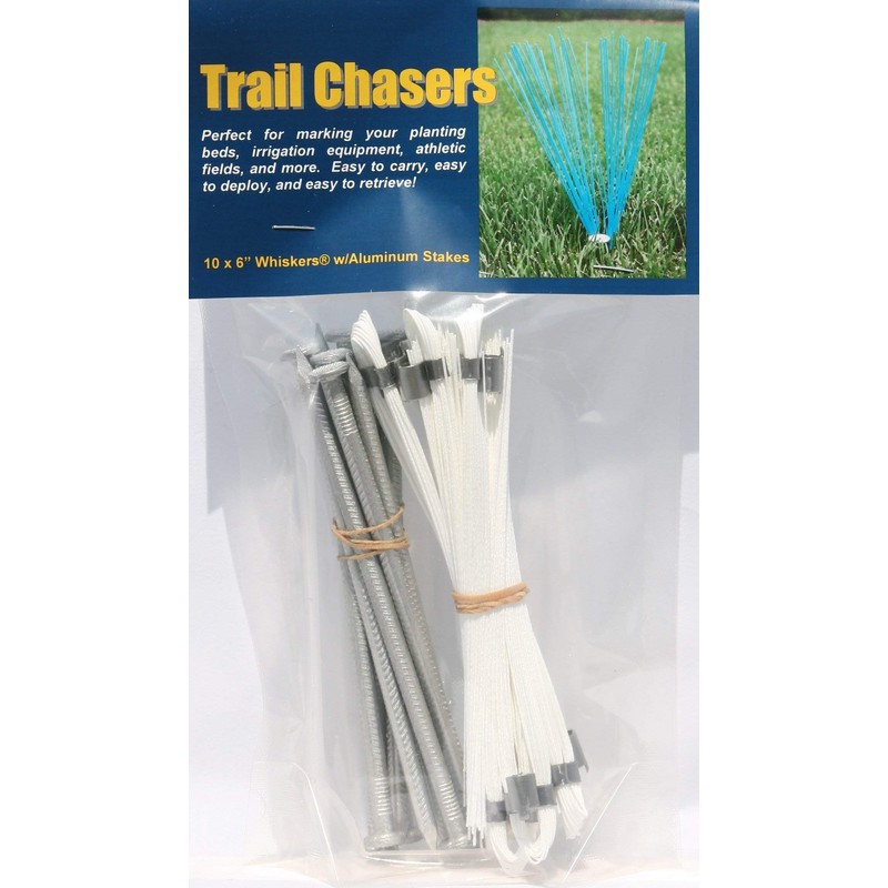 Trail Chasers Ground Markers Pkg of 10 White 6 Inch Marking Whiskers with Lightweight, Non-Rust, Aluminum Stakes