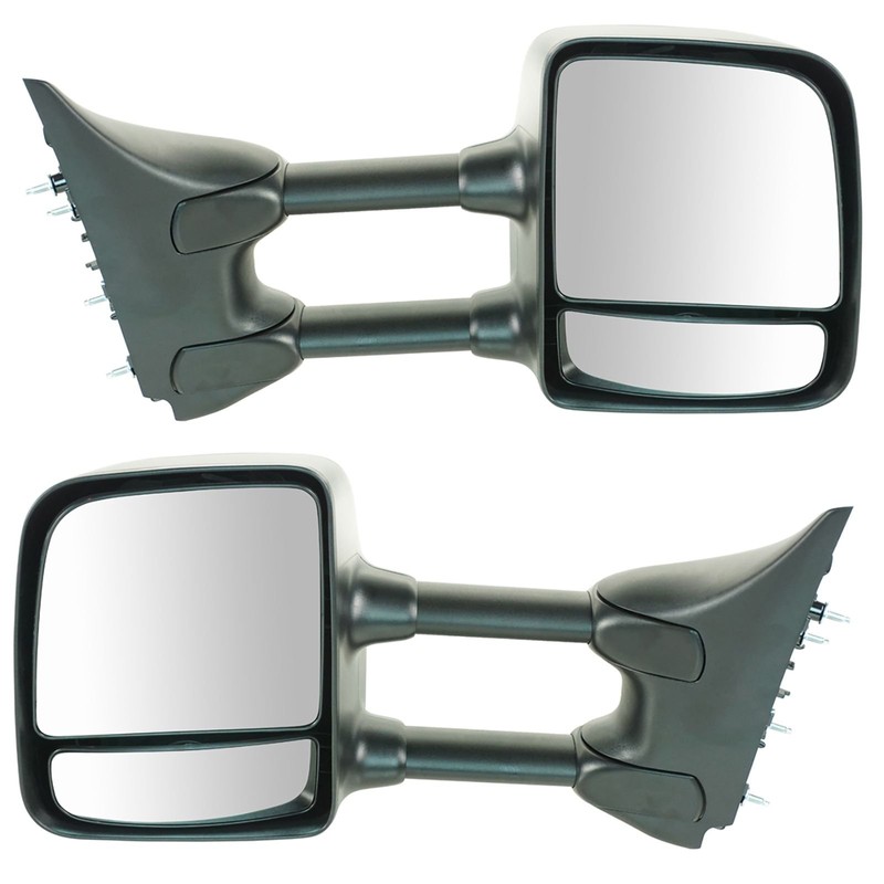 * Mirror Type: Towing * Mirror Color / Finish: Textured Black * Mirror Folding Type: Manual-Folding * Mirror Extension Type: Manual-Telescoping * Mirror Operation: Manual * Mirror Arm Style: Dual Arm * Set Quantity: 4 Piece * Mirror Set Includes: * (2) Tow Mirror Support Brackets * (1) Driver Side Mirror * (1) Passenger Side Mirror