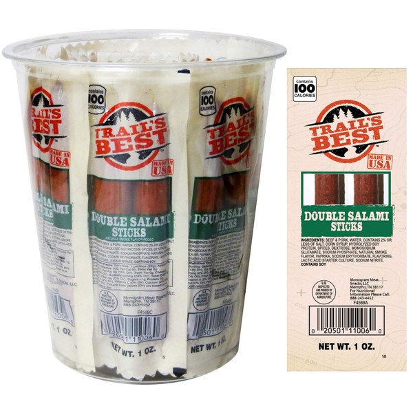 - Moist and tasty Trail's Best Double Salami Sticks - Only 100 Calories per pack