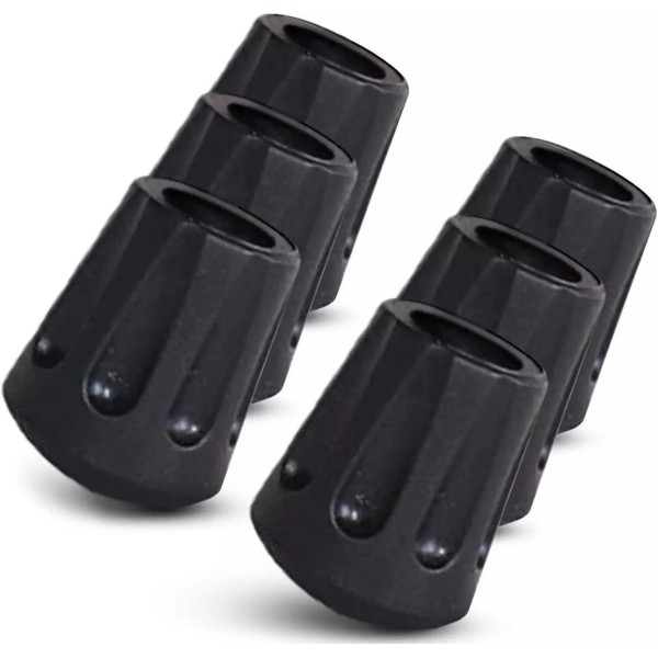 TrailBuddy Walking Stick Tips - Pack of 6 Replacement Rubber Cane Tips Fit Most.