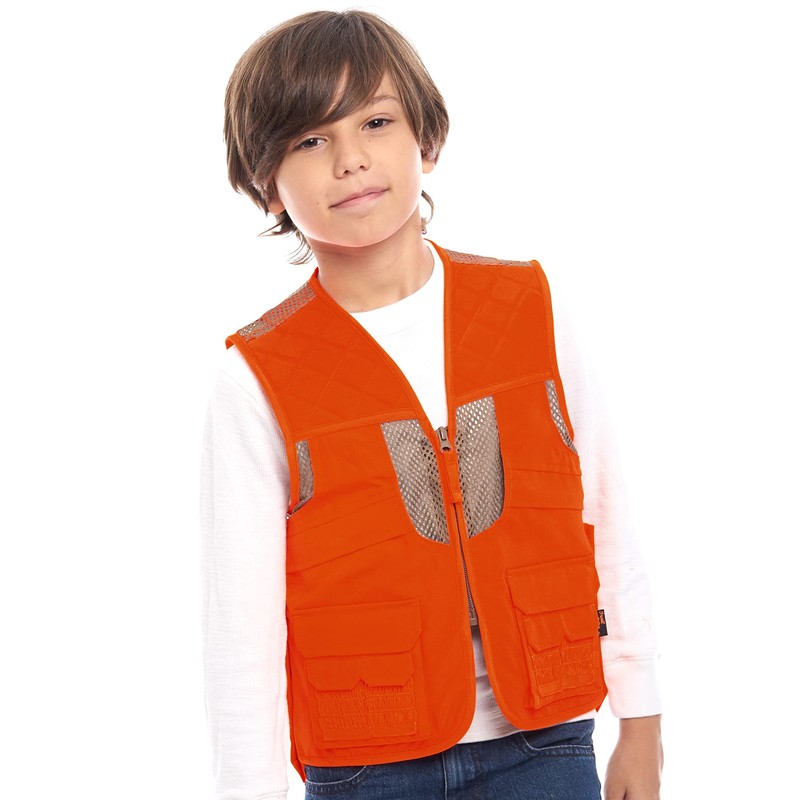 TrailCrest by Treel Kid's Upland Deluxe Blaze Orange Safety Front Loader High Visibility Vest, XL