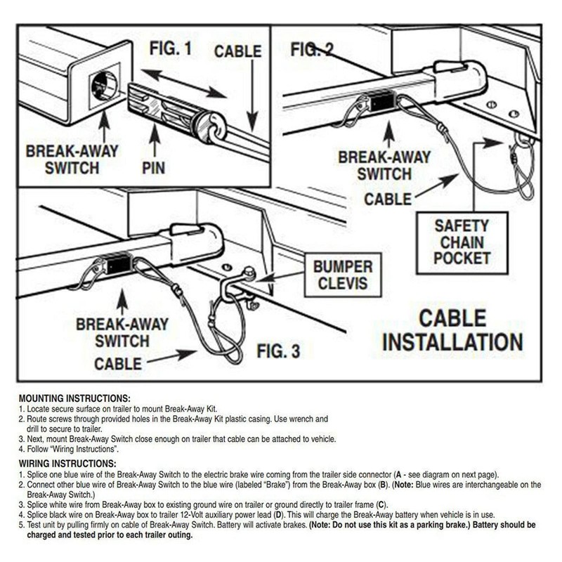 - Function: The trailer breakaway kit is designed to activate the brake of the trailer when it has disconnected from the tow vehicle.