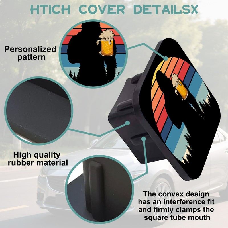 Trailer Hitch Cover Sasquatch and Beer Square 2 Inch Receiver Tube Plug Cover Compatible with Most Models Hitch Receivers Plug for Pickups Trucks Cars Suvs