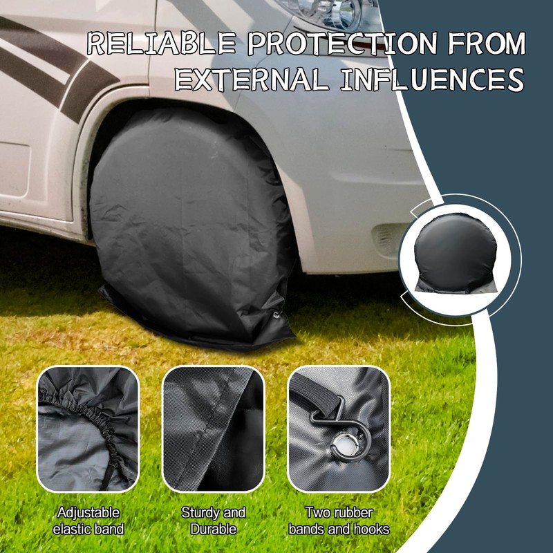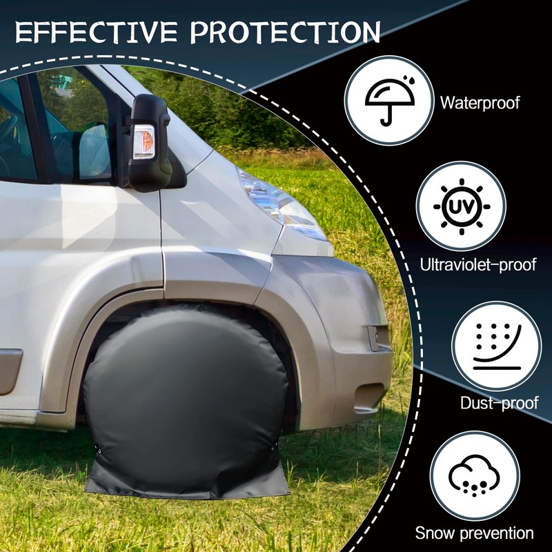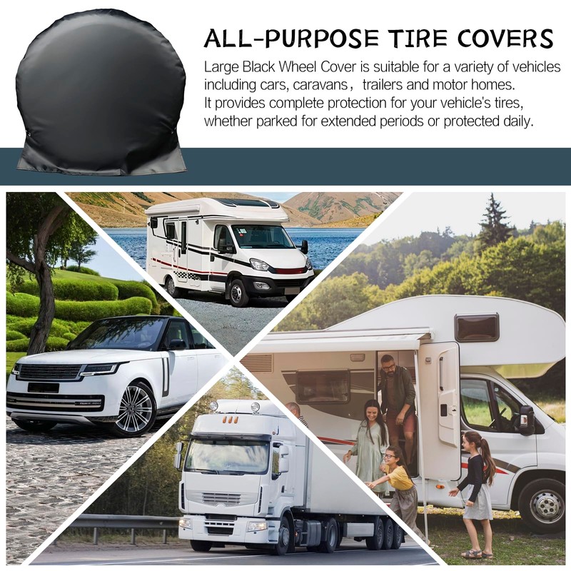 -Water & UV Shielding: Protect your tires with this tire Covers , a waterproof and tire Covers designs to fit trailers, campers, trucks, SUVs, and cars with a diameter of 65cm, ensuring durability and longevity.