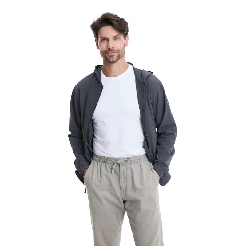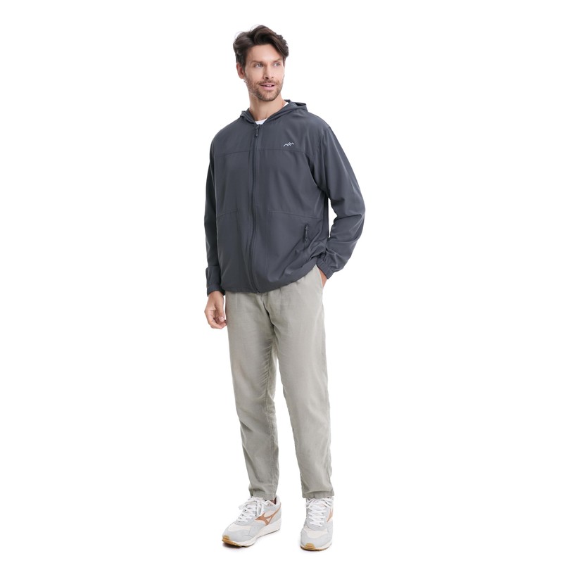 - HOODIE & ZIPPER POCKETS: The men's lightweight jacket features hoodie design preventing your neck from sunburn. 2 zipper pockets for keeping your personal belongings, like wallet, cell phone, keys, cards.