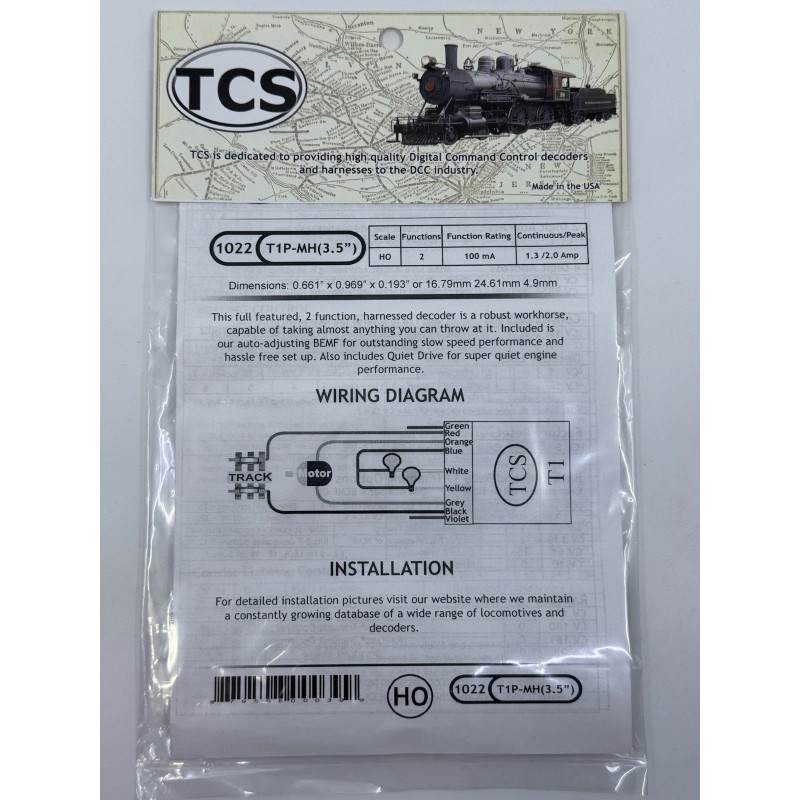 Train Control Systems HO Scale TCS #1022 Train Control Systems T1P-MH 2-Function DCC Decoder BRAND NEW