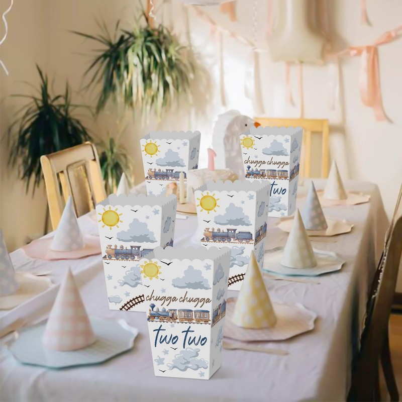 Train Party Supplies Train Popcorn Boxes Favor Bags Goodies Candy Treat Bags for Chugga Chugga Two Two Party Decoration Choo Choo Im Two Birthday